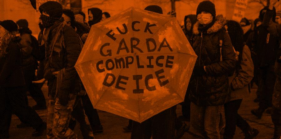 Le 13 février, une manifestation avait lieu dans ville Saint-Laurent pour dénoncer les liens de Garda World avec la police de l’immigration américaine ICE ainsi que le financement de cette dernière par le gouvernement québécois et canadien.